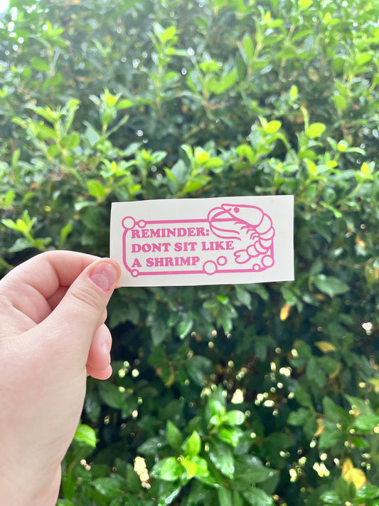 Reminder: Don't Sit Like A Shrimp Vinyl Decal | 3.5in | Funny Decal for Laptops, Water bottles, and More! | Cute Tiny Decal for Gamers, Etc!