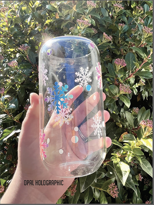 Winter Holographic Snowflake Beer Can Glass Cup with Straw