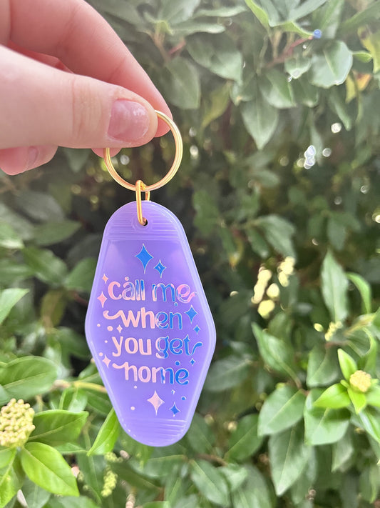 Call Me When you Get Home Purple Motel Keychain | Cute Retro Acrylic Purple Holographic Keychain | Vintage Aesthetic Keychain