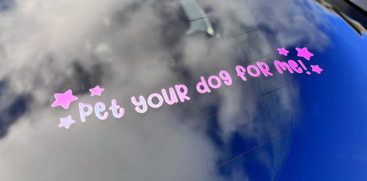 Pet Your Dog For Me 6.5inch Cute Car Window Decal | Vinyl Car Decal | Cute Funny Holographic Bumper Sticker