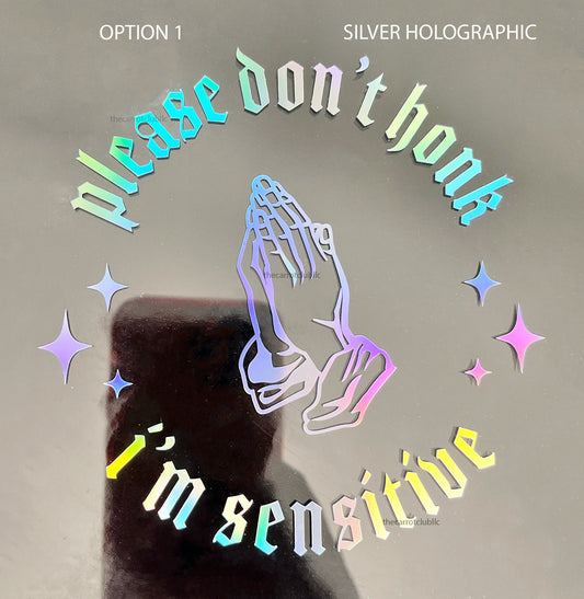 Please Don't Honk I'm Sensitive Holographic Car Decal | 4 inch, 5 inch | 2 Options Cute Funny Bumper Sticker | Personalized Decal
