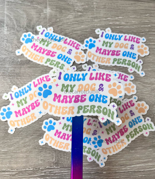 I Only Like My Dog Cute Sticker | Die Cut 3 inch Glossy Water Resistant Sticker | Dog Lovers Sticker | Laptop Water Bottle Sticker