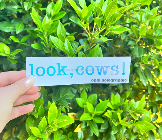Look, Cows! 5.5 in x 1 in Holographic Car Decal | Vinyl Decal | Car Bumper Sticker | Personalized Car Decal | Cow Vinyl Decal